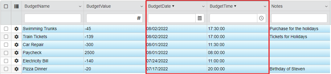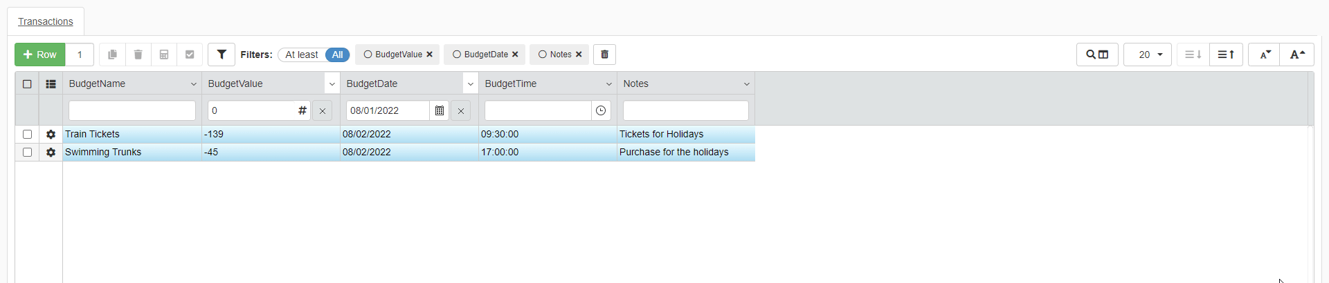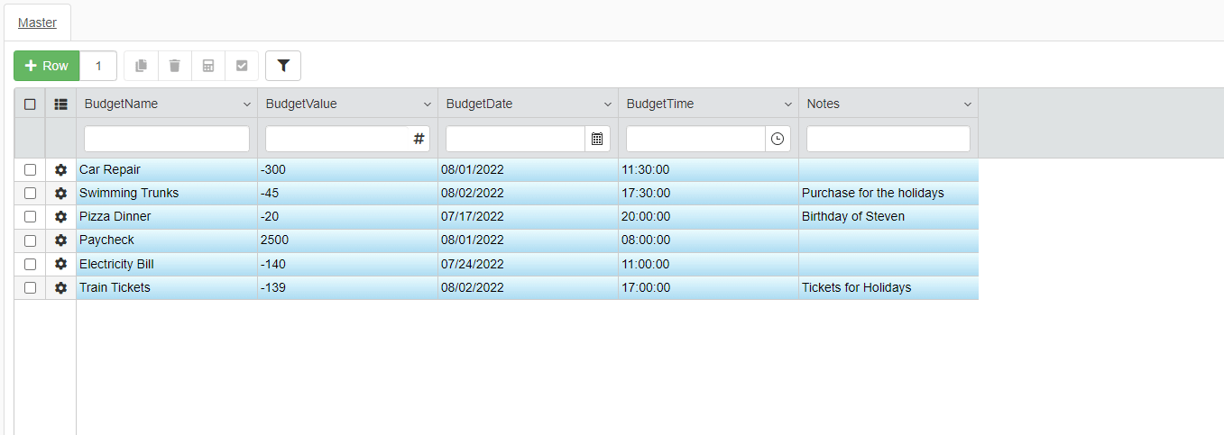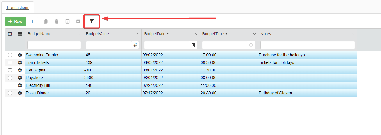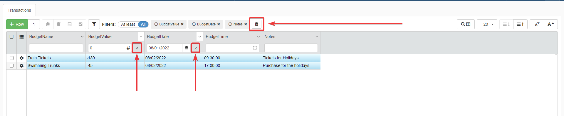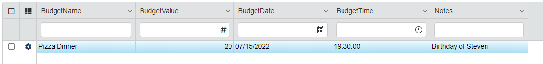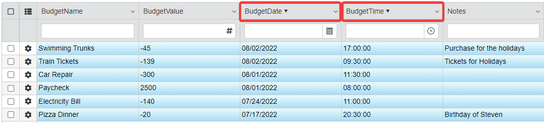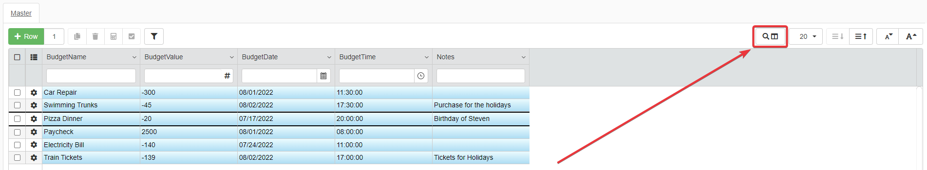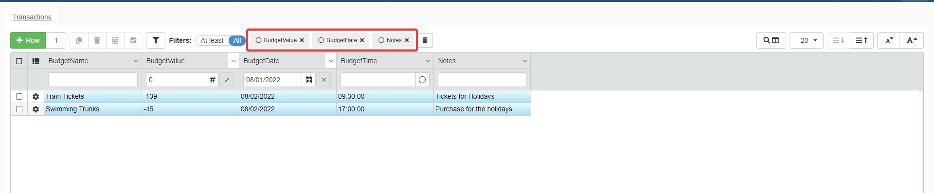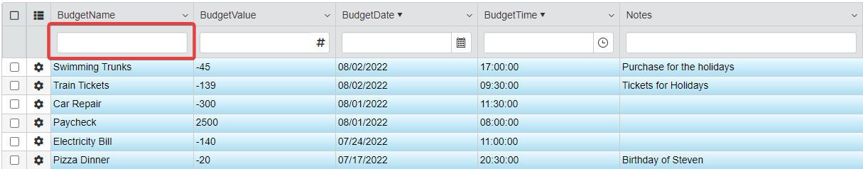 For instance, suppose that you need to filter the entries of the table by BudgetValue, BudgetDate, and Notes field. In particular: