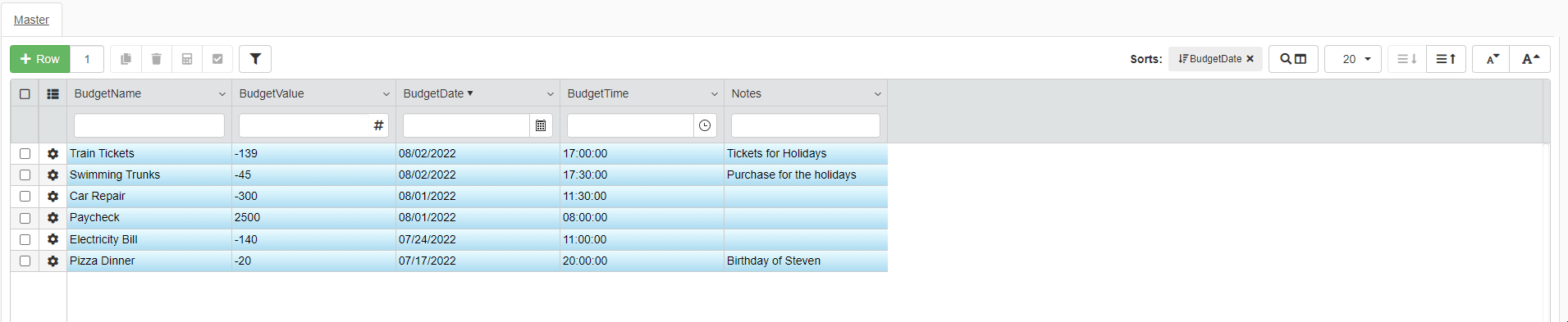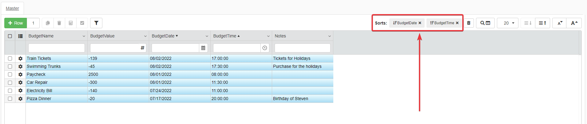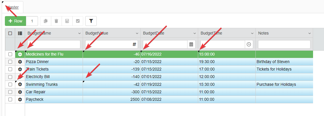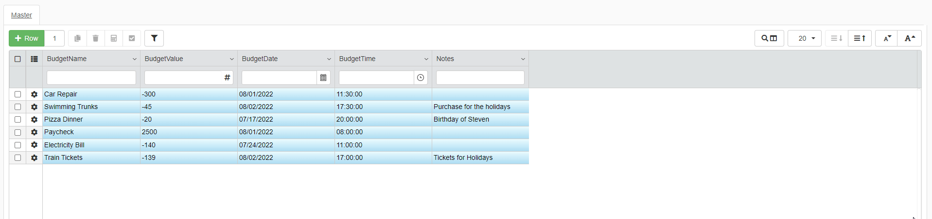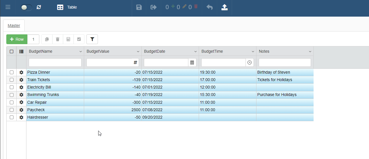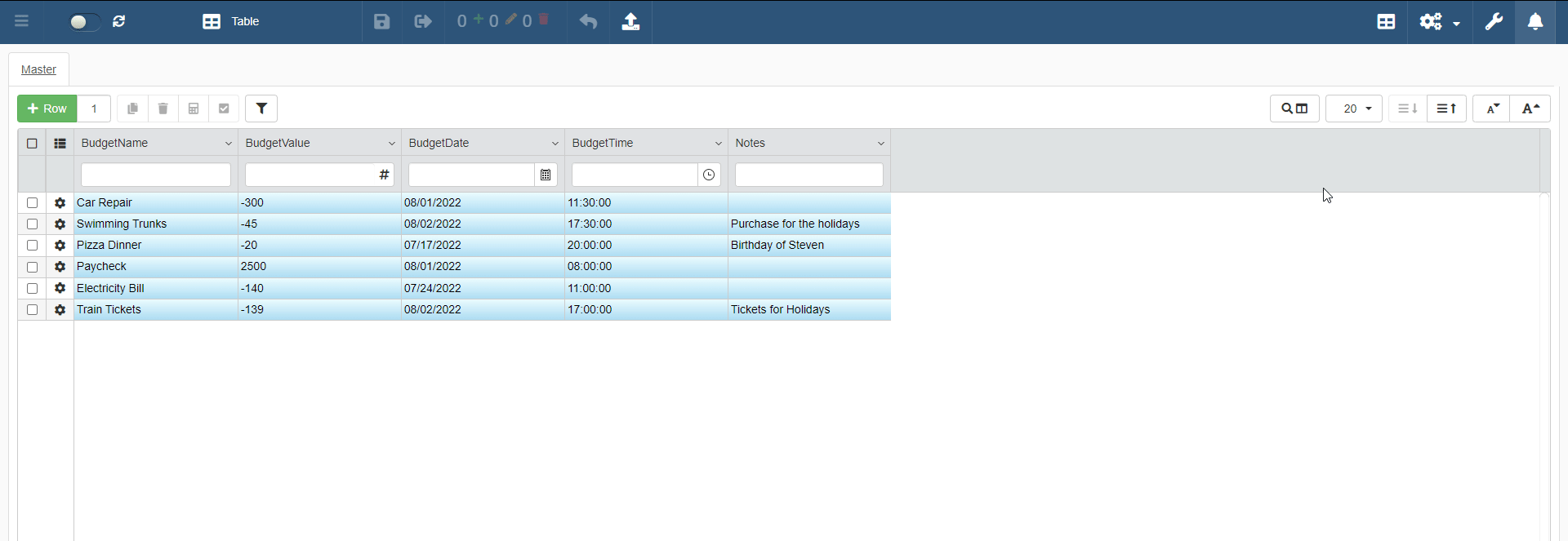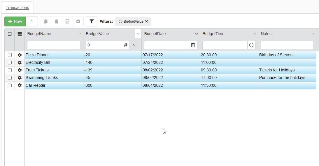 For instance, suppose that you need to filter the entries of the table by BudgetValue, BudgetDate, and Notes field. In particular: