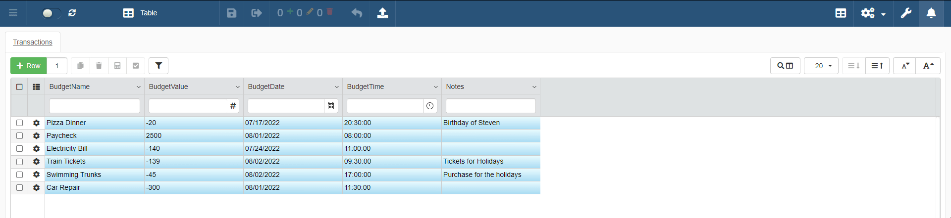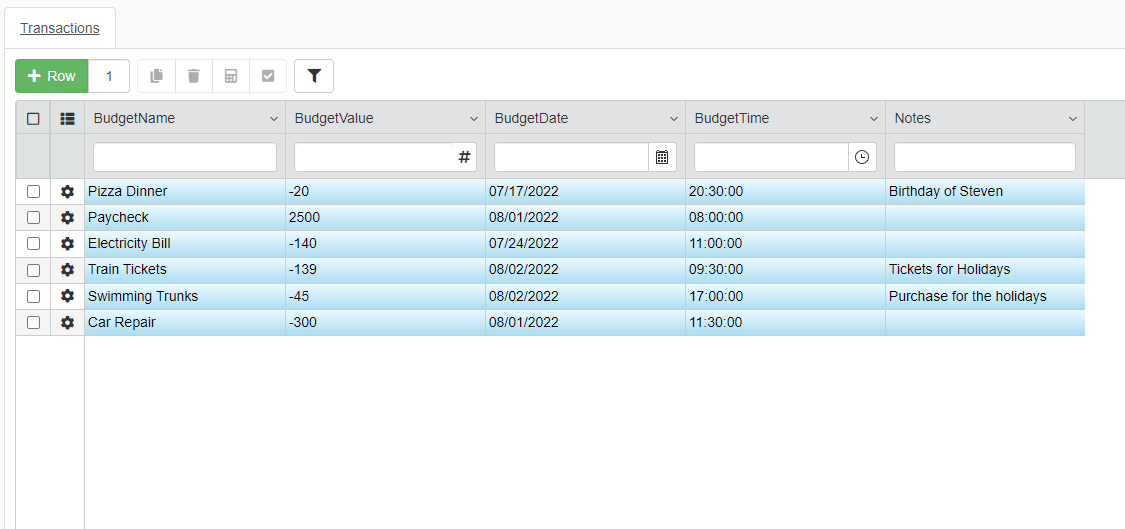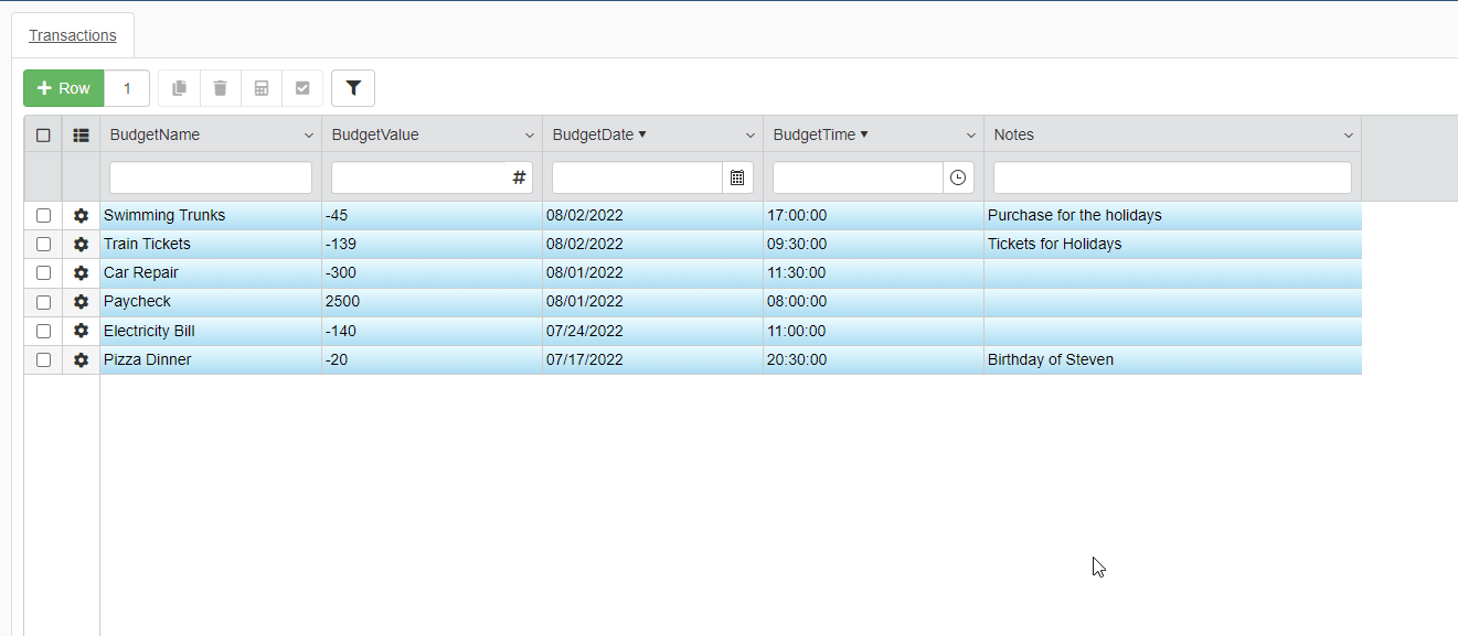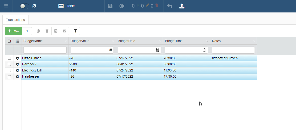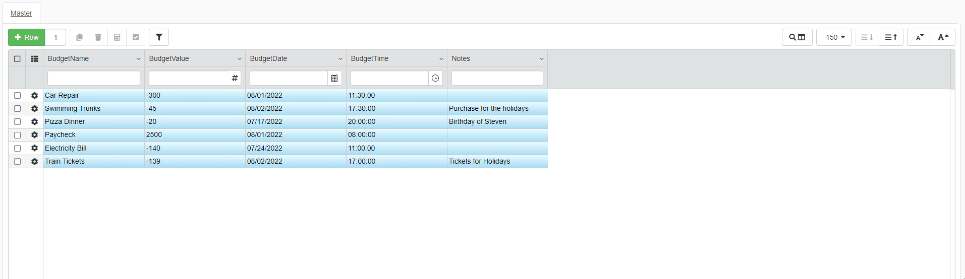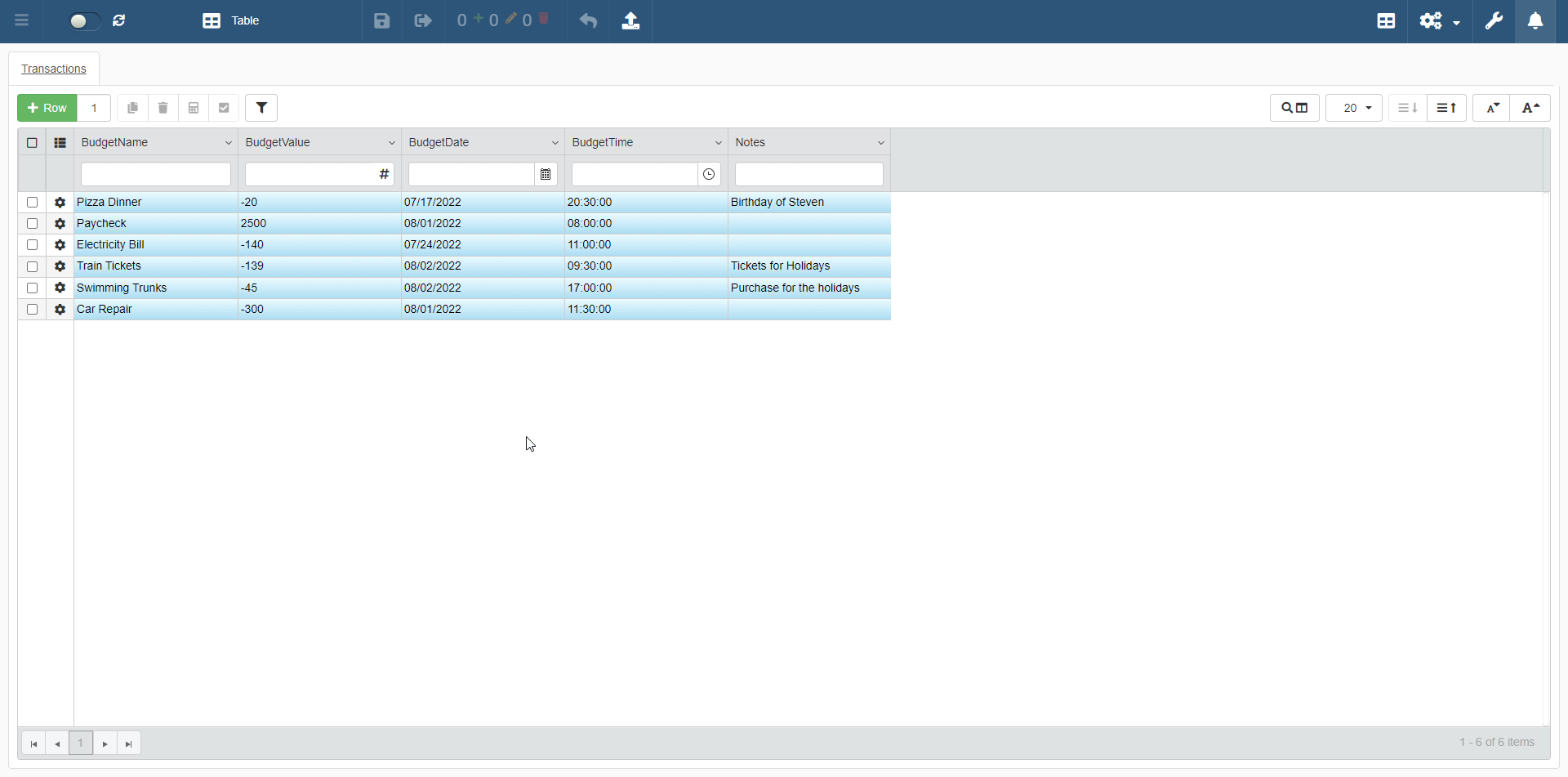 For instance, suppose that you need to filter the entries of the table by BudgetValue, BudgetDate, and Notes field. In particular: