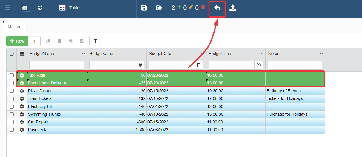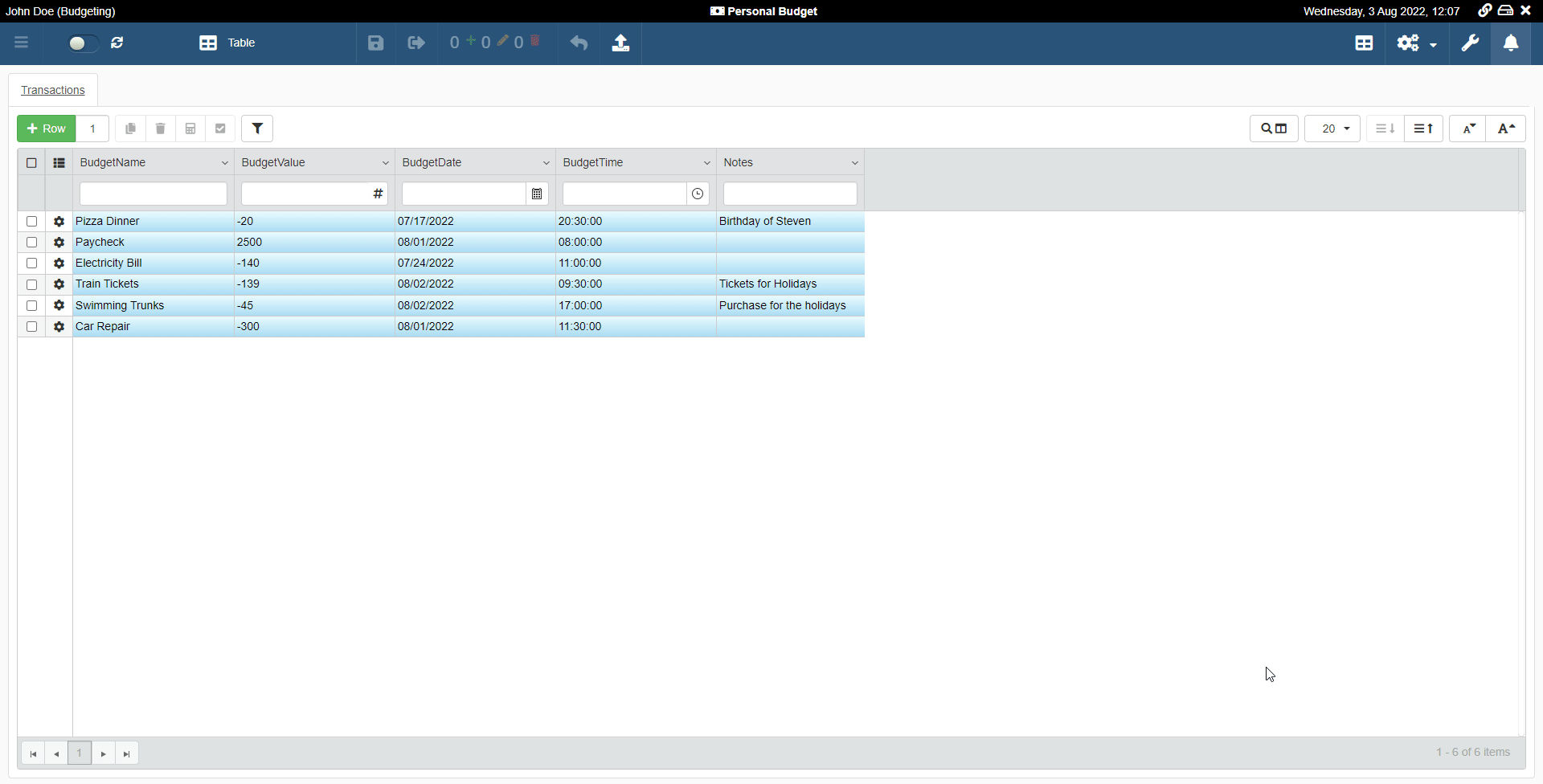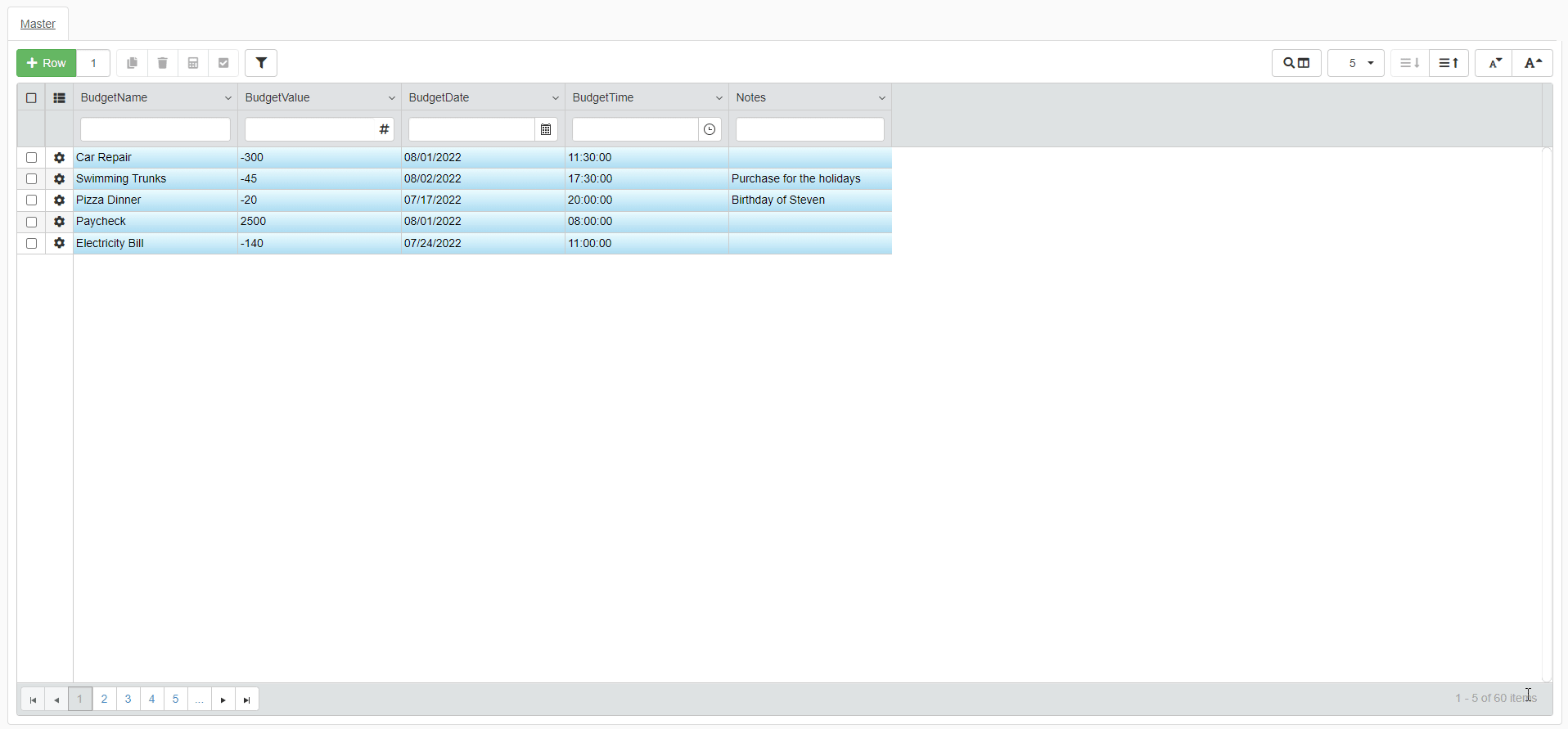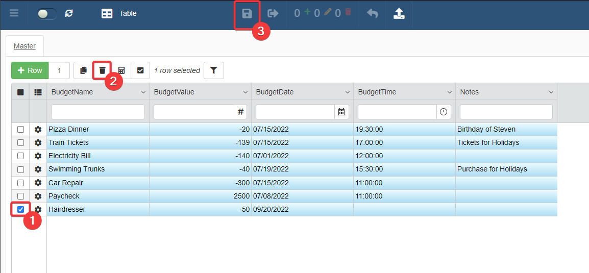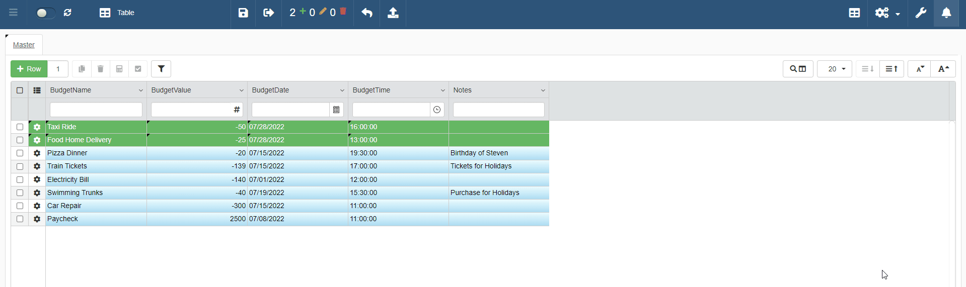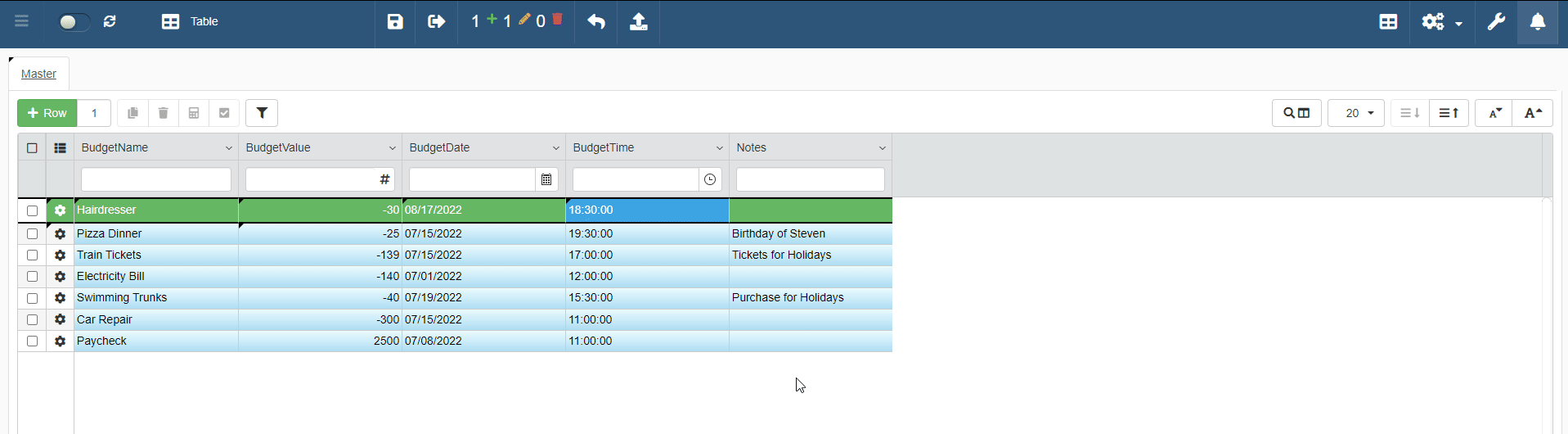 For instance, suppose that you need to filter the entries of the table by BudgetValue, BudgetDate, and Notes field. In particular: