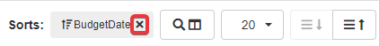 You can delete a Sorting option by clicking on the Remove sort button () on the related tag on the upper-right corner of the table.