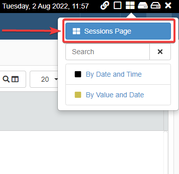The Sessions button () opens a drop-down list. You can select from the drop-down list the preferred Session without leaving the application.