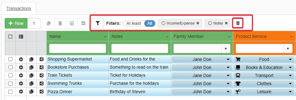 If you want to remove all the filters from a table: click on the Clear Filters button (). As alternative, click icon above the tag to cancel the single filter.