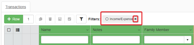 Remove a filtering option by clicking on the Remove filter button () on the tag to be deleted.