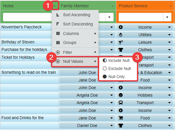 • Null Only Show only null values in the filtering.