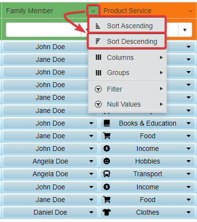 Choose the preferred sorting mode. a. Choose Sort Ascending to arrange the rows in ascending order. b. Choose Sort Descending to arrange the rows in descending order.