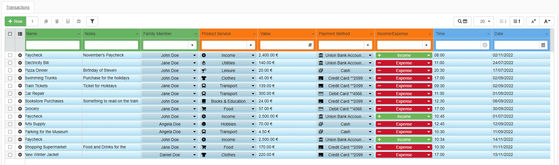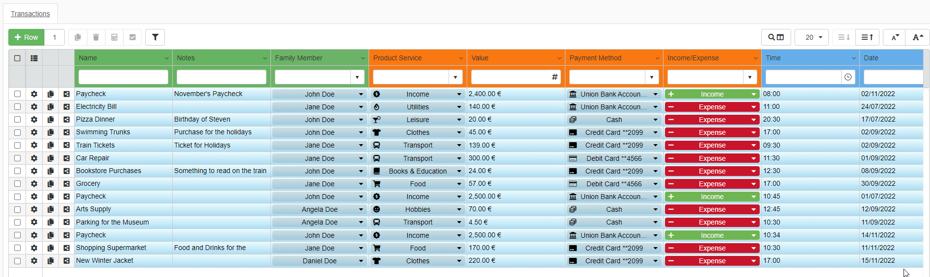 The Users can choose how to sort the table's rows according to the cells' values of a column.