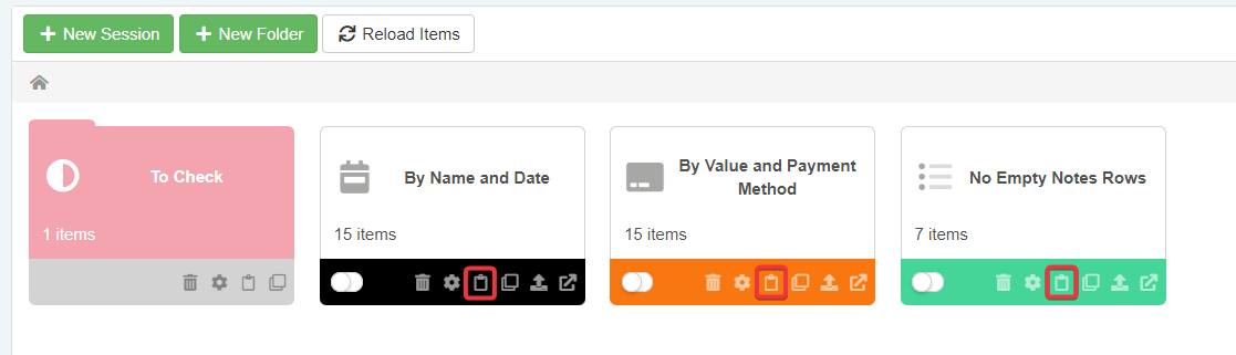 Click on the Clone button () on the Session's tile (in Tile view) or the Actions column (in Grid view) to clone the Session.