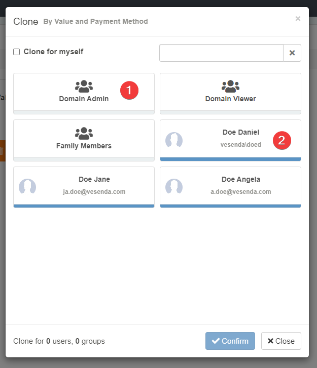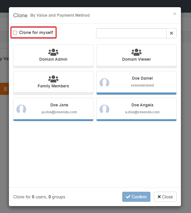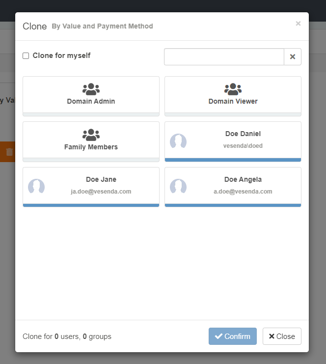 Choose (1) one or more users Users for which you want to clone the selected Session or (2) an entire User Group.