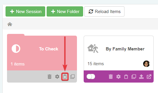 You can use the same procedure to clone an entire folder by following the same steps above. Click on the icon on the folder to open the Clone window and choose with who you want to share the Sessions folder.