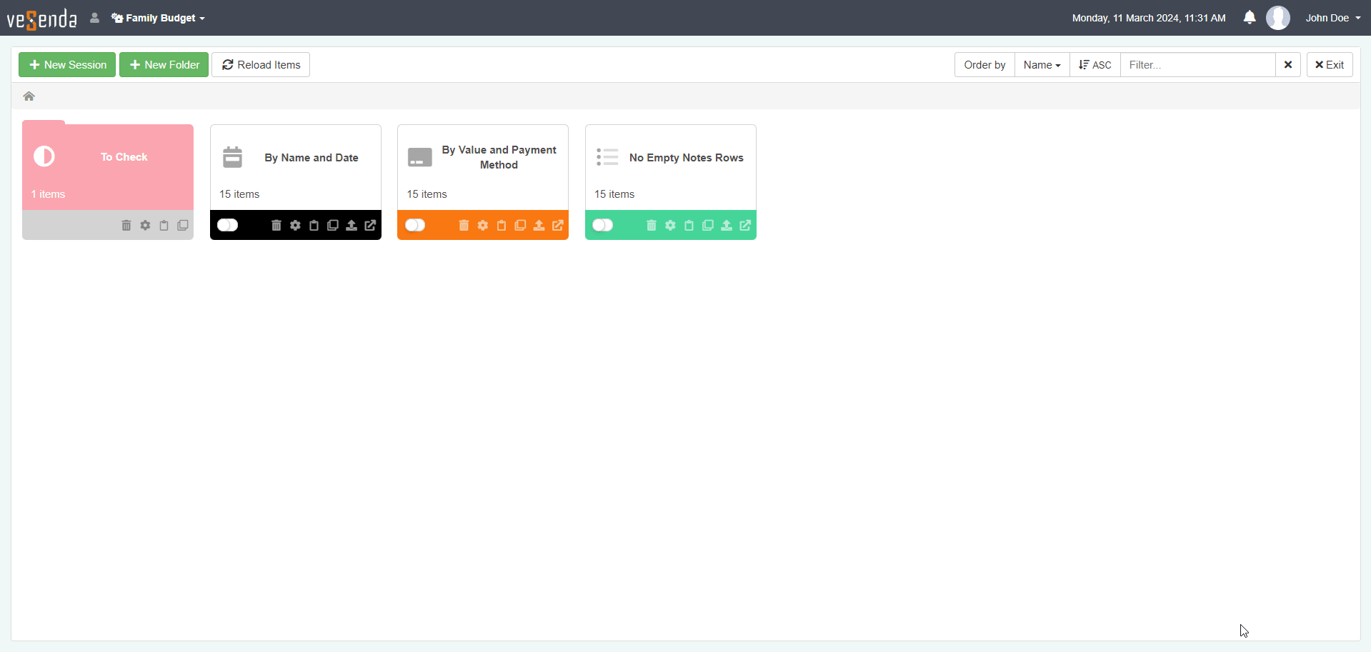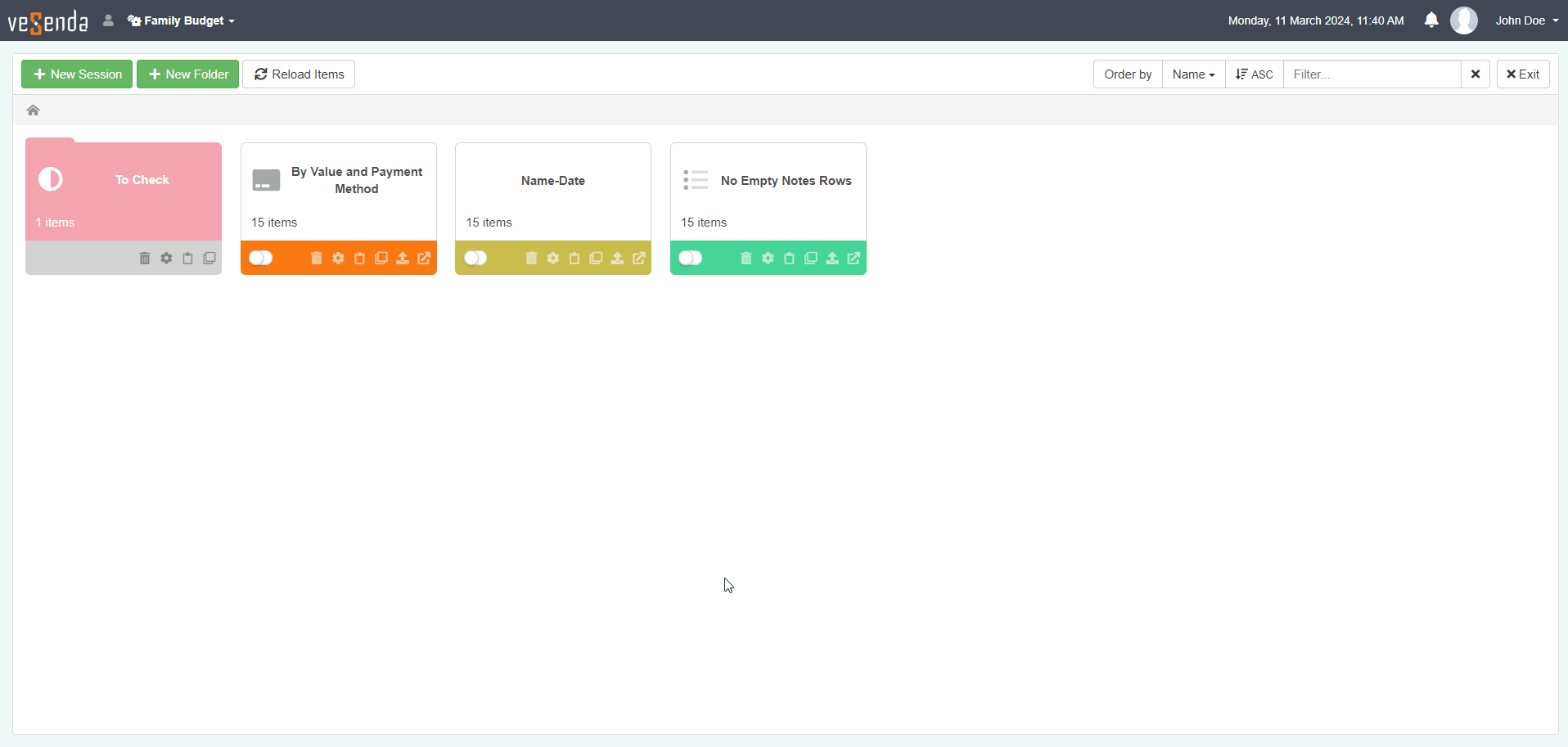 You can change the Session or folder's name, description, and color from the Sessions Page.