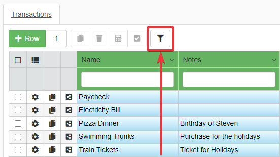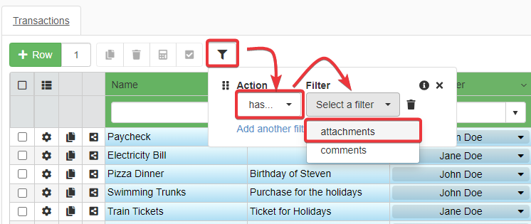A menu with the Action and Filter drop-down list will appear. Click on the Filter drop-down list.