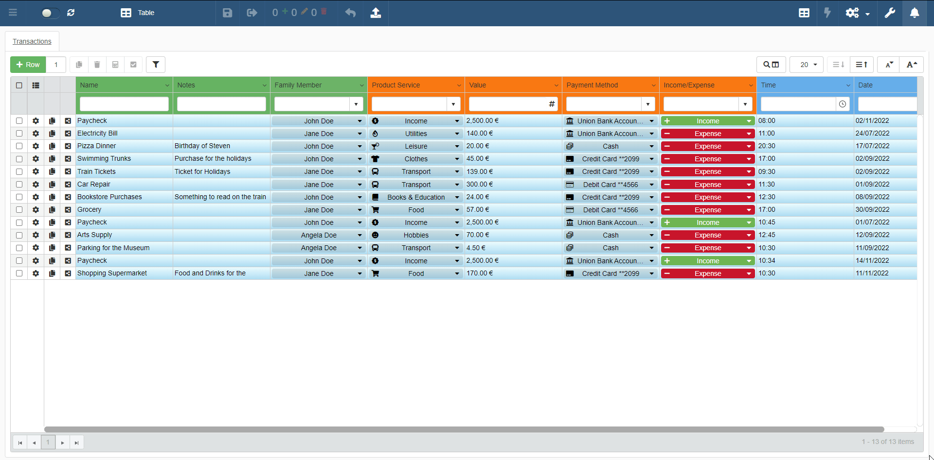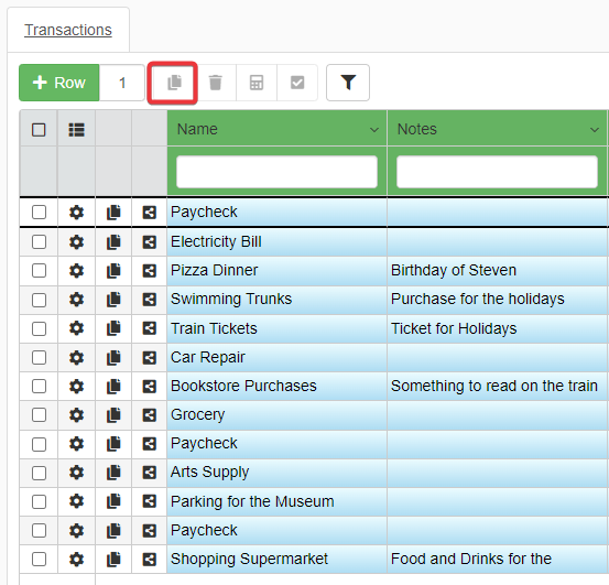 In case you need to clone one or more rows, you can use the Clone button ().