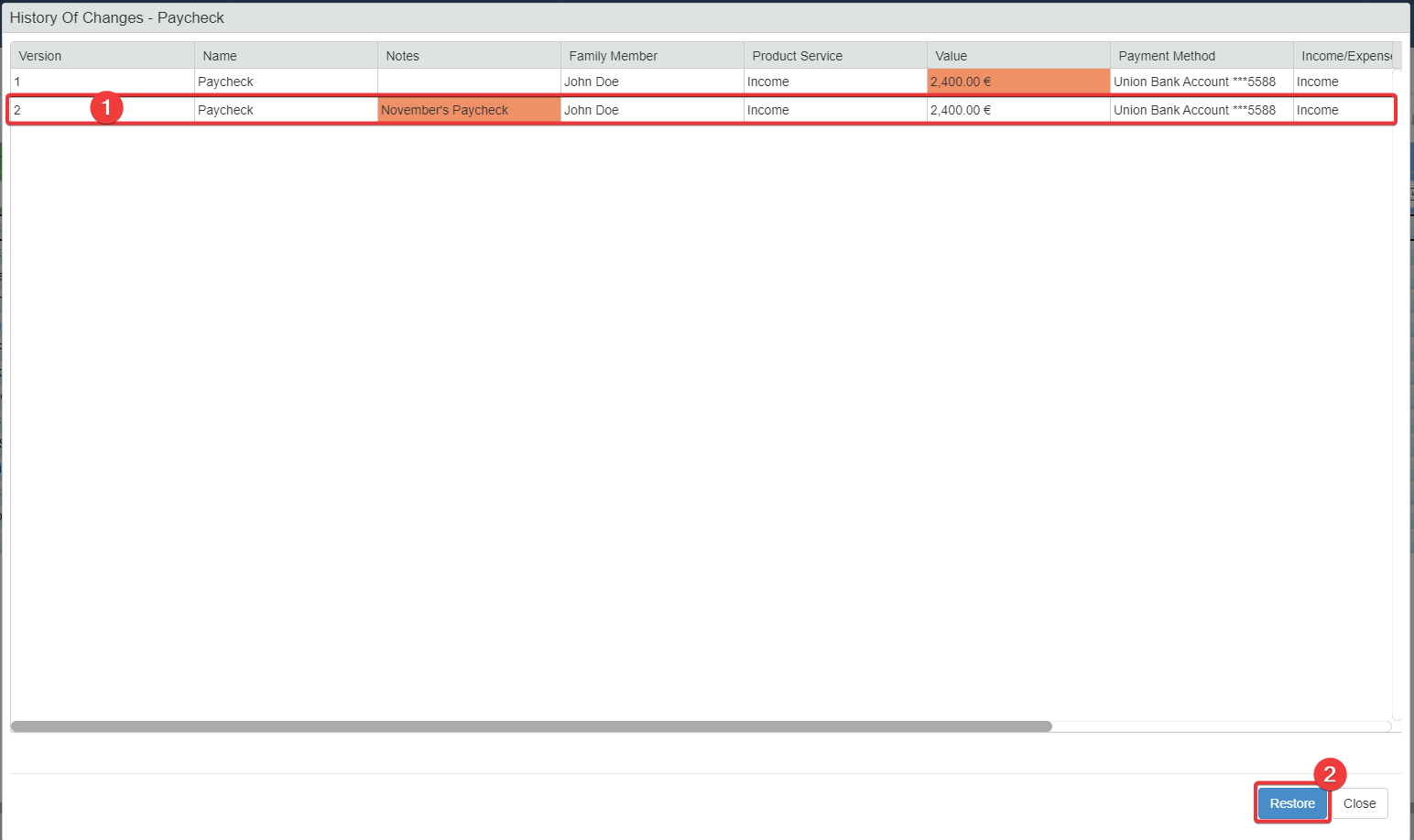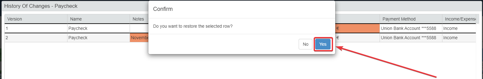 If the Designer has enabled the Users to restore changes from the History, you can restore the version of the row you prefer.