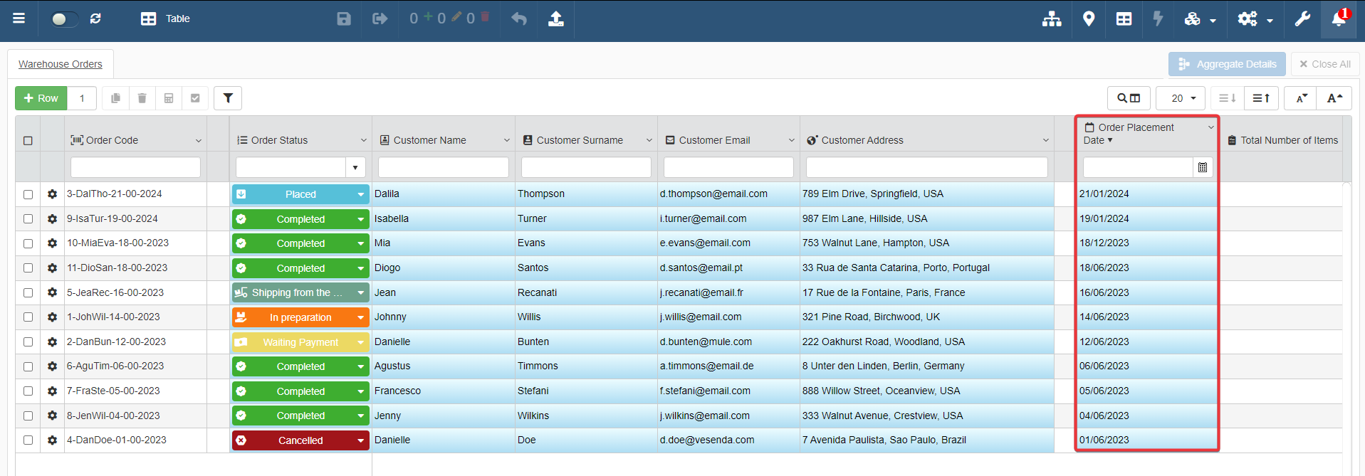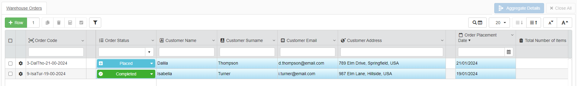 The Warehouse Orders application manages the orders and shipments from a warehouse.