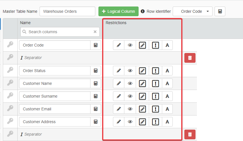 eLegere 2.15 has removed the Column Restrictions option () from the Design Mode's Restrictions subpanel.