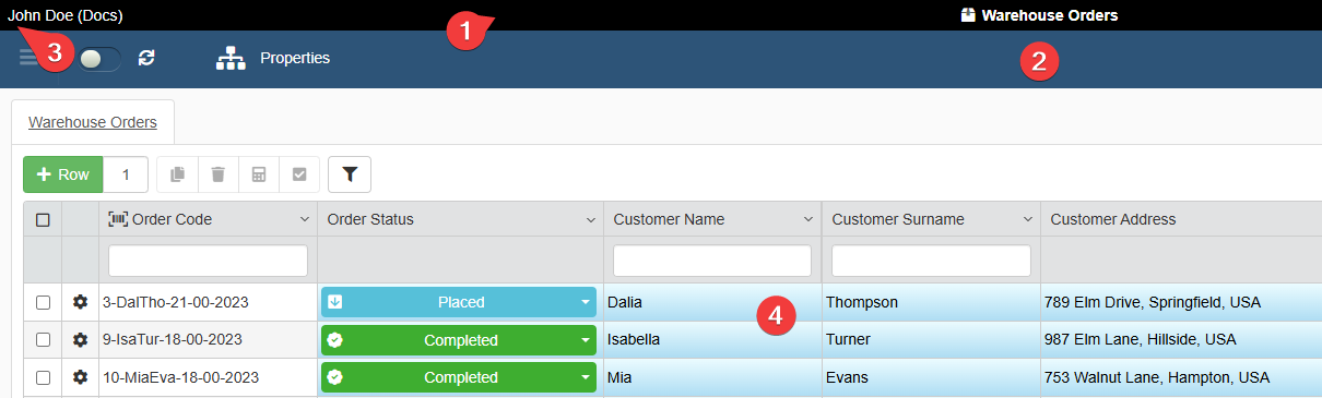 If the Designer has configured a specific color for a column's cells (in Design Mode > Layout > Cell Colors bg), the Cell Colors bg choice overrides the application's choice for the color gradient highlighting the editable cells (4).