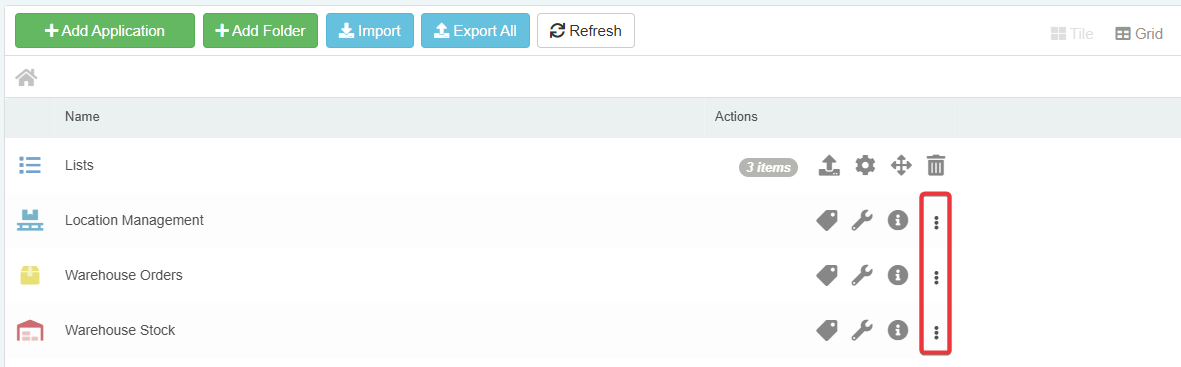 In the Home, click the icon on the application in either Tile or Grid view.
