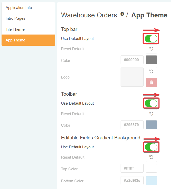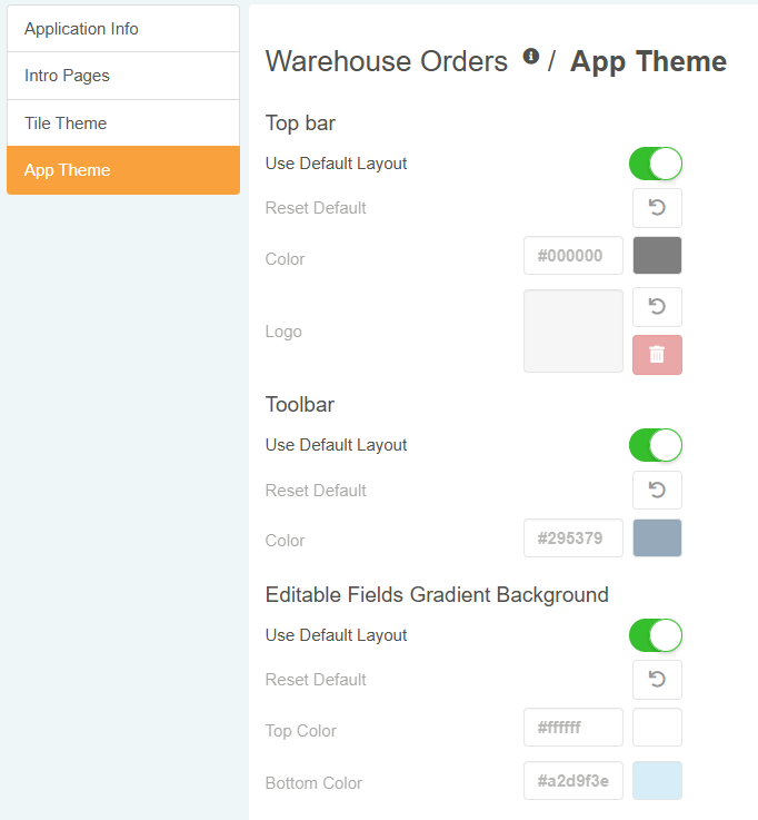 Follow the steps below to customize the App Theme.