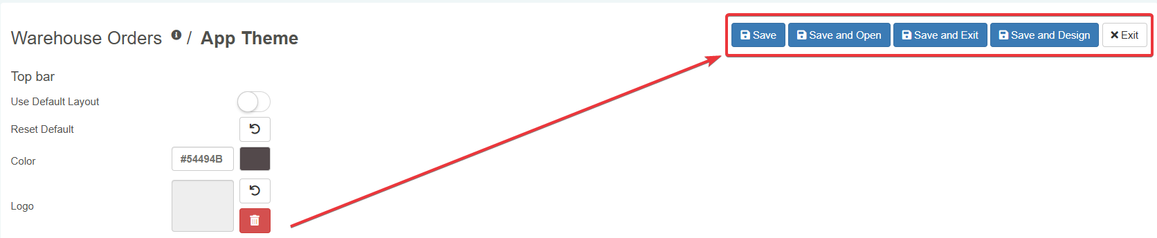 Once done, click on Save, Save and Open, Save and Exit or Save and Design to save the changes. (If you have changed your mind and you don't want to save the changes, click on the Exit button instead.)