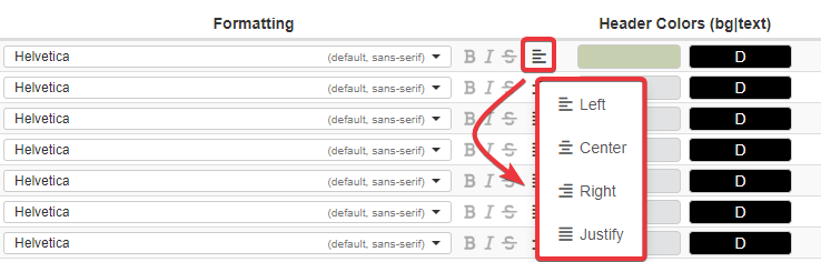 Choose a text alignment for the column's cells' text.