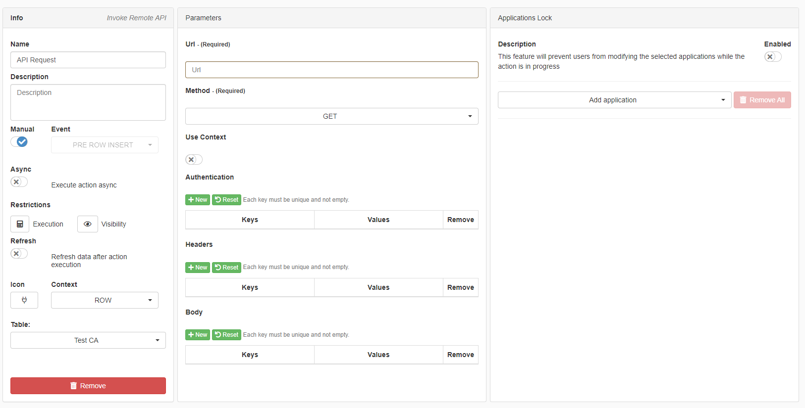 La Custom Action Invoke Remote API permette di inviare richieste sia POST che GET all'interfaccia API di un altro prodotto.