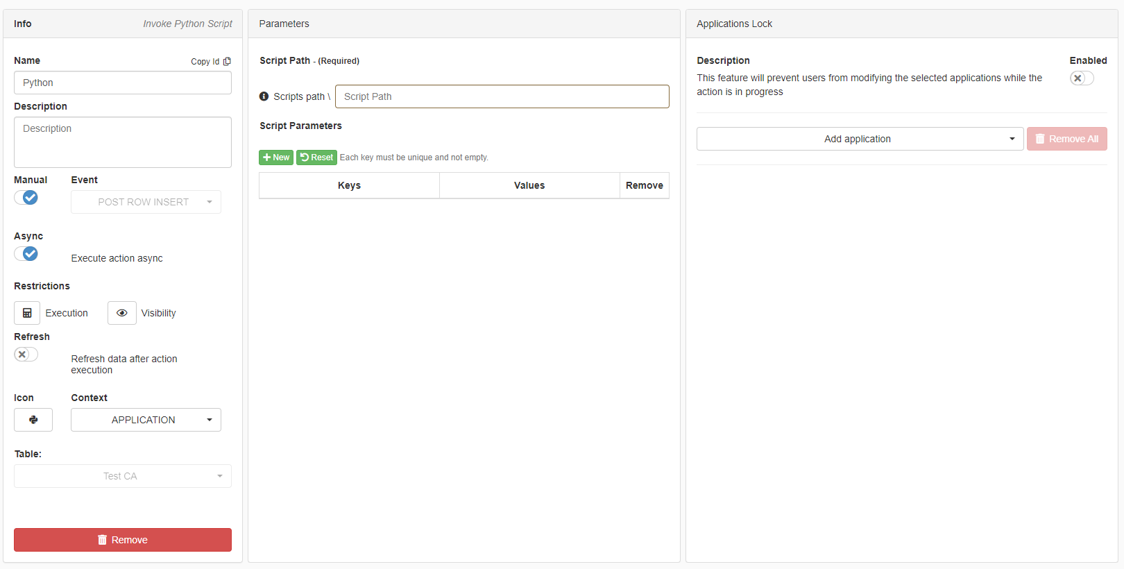 Le Custom Action Invoke Python Script sotto non sono abilitate in maniera predefinita. L'amministratore dell'installazione eLegere decide se installare Python e abilitare le Custom Action Invoke Python Script.