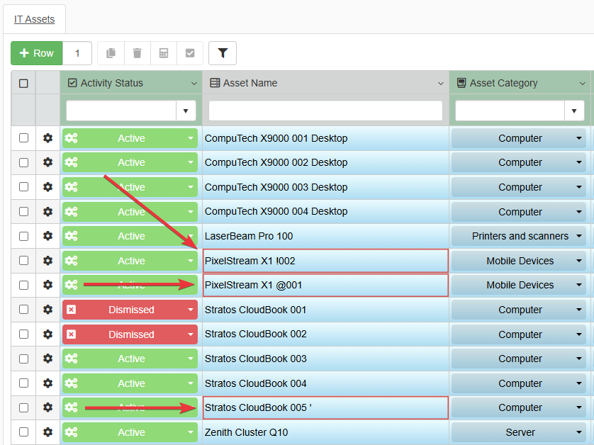If you see an highlighted cell with special characters, it means that it contains a character not allowed. Don't worry: just edit them to remove the restricted character. Having cells with restricted characters won't block the saving process if you have other rows to be recorded.
