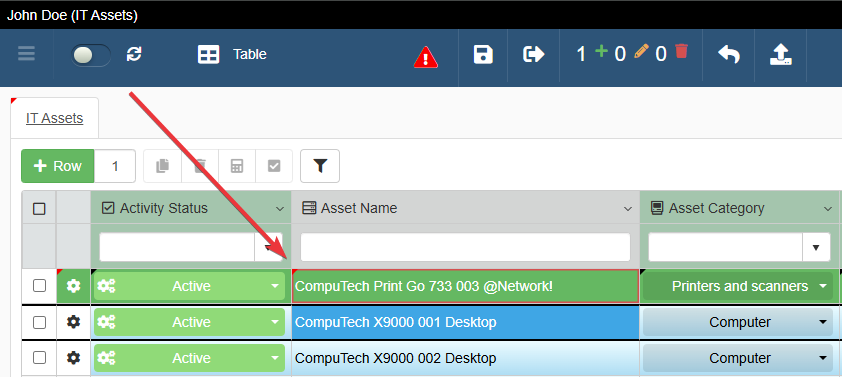 If an issue happens while saving a new or edited row, an error notification will warn you about the problem.